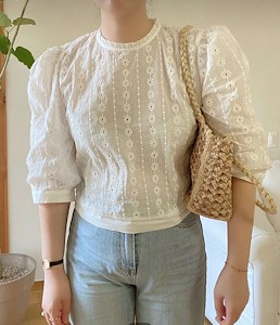 쥬디 펀칭 자수 블라우스