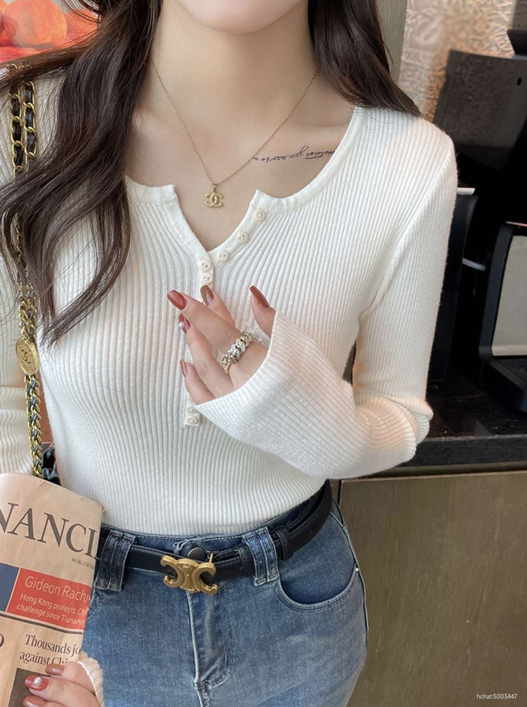 단추슬림니트