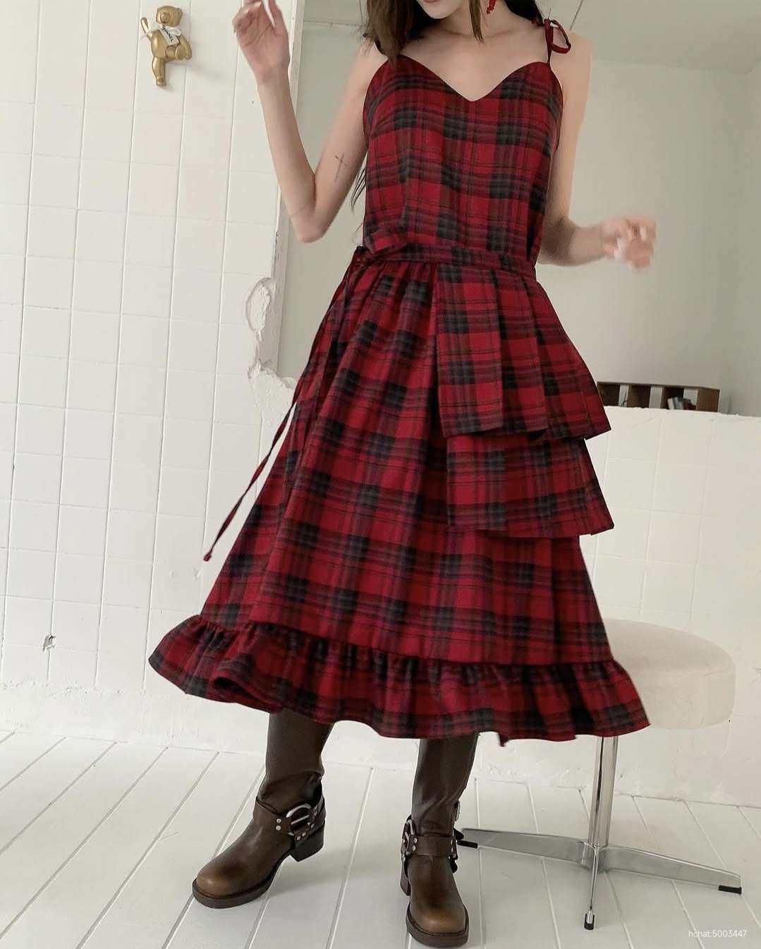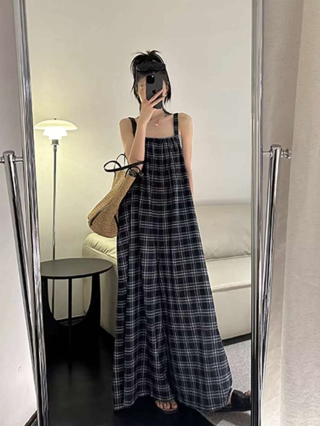 체크멜빵점프슈트