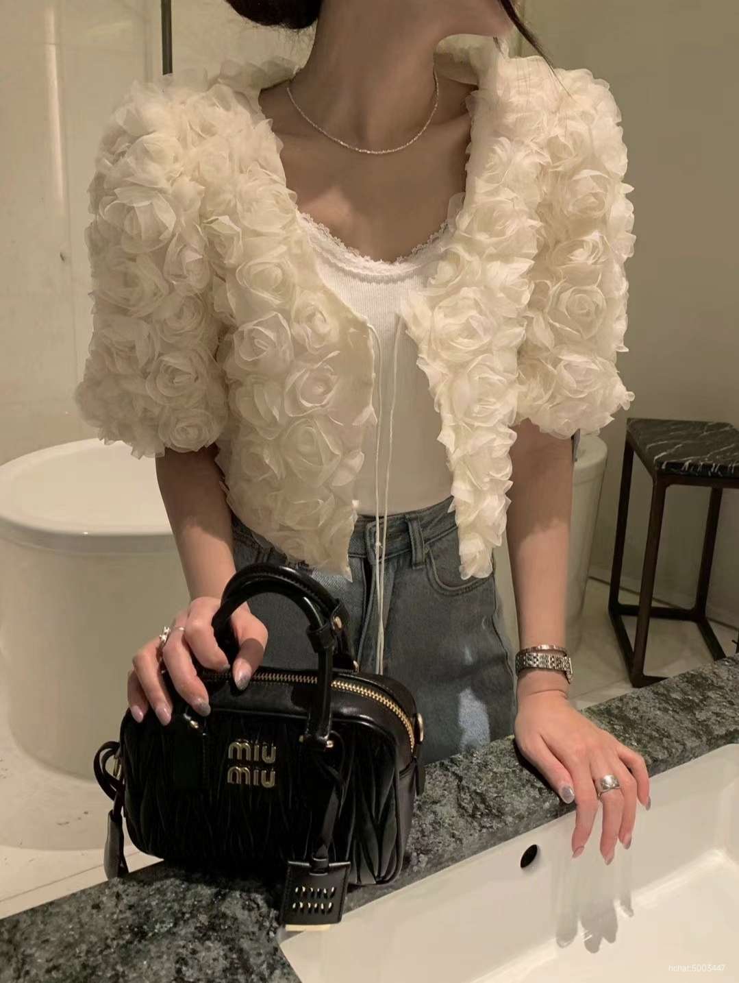 반팔장미가디건