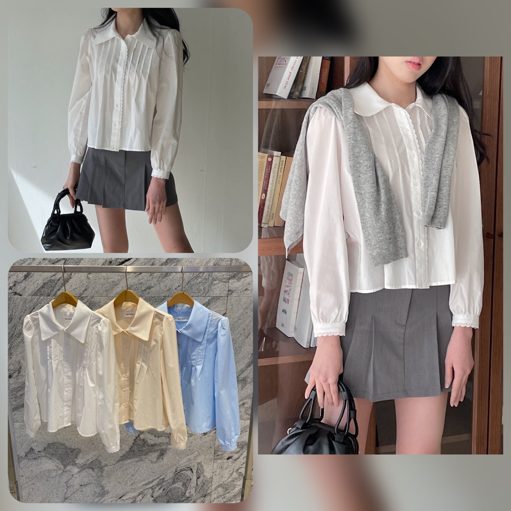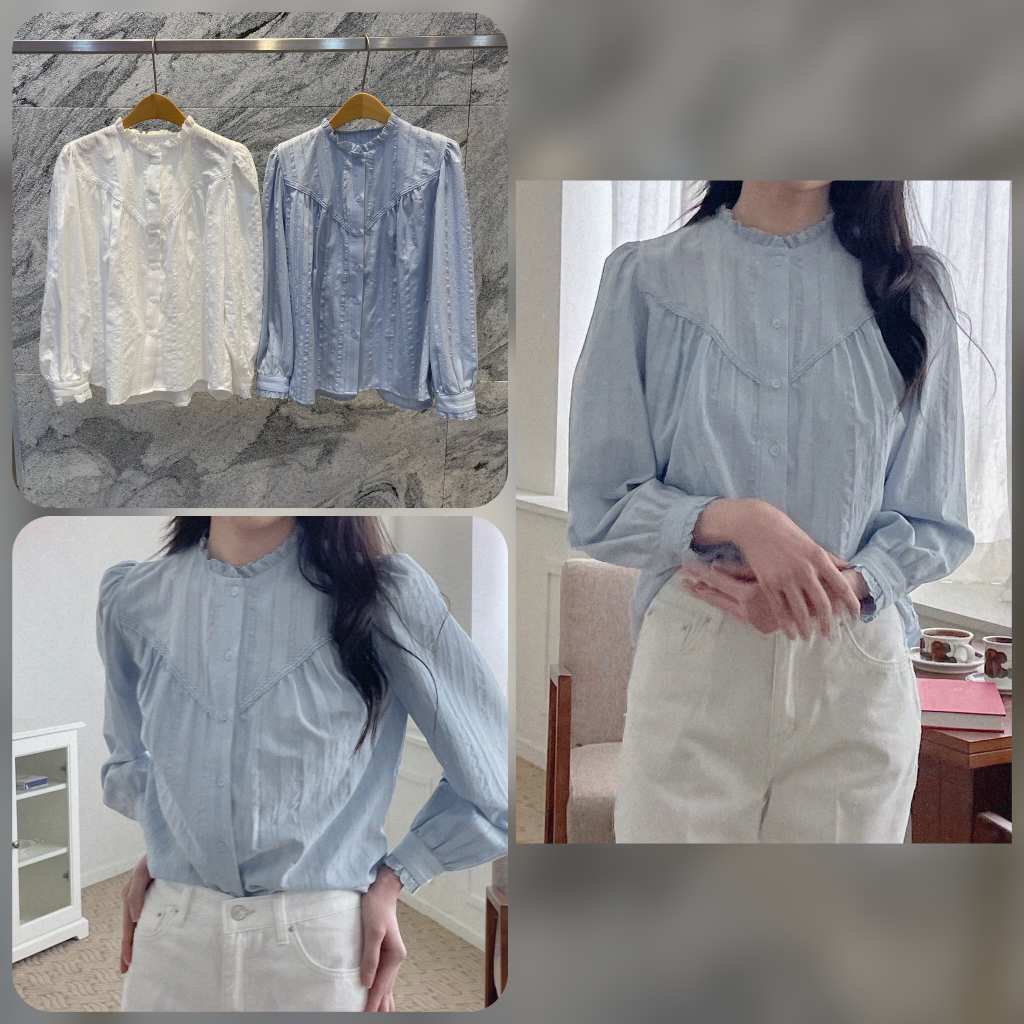 뉴버전-아이오블라우스(BL블라blouse레이스카라핀턱신상퍼프세일러프릴)