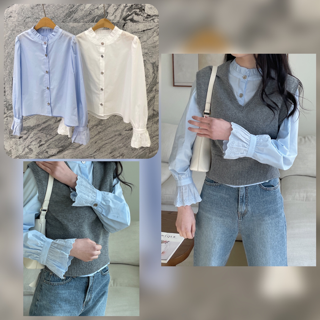 몽블bl (가을신상,23fw,하객룩,프릴blouse,레이어드블라우스)