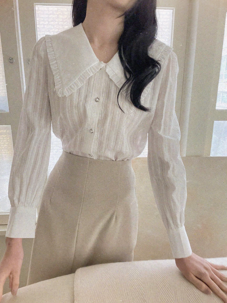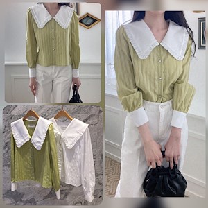 빅카라레이스블라우스(카라배색진주셔링세일러셔링프릴브라우스)