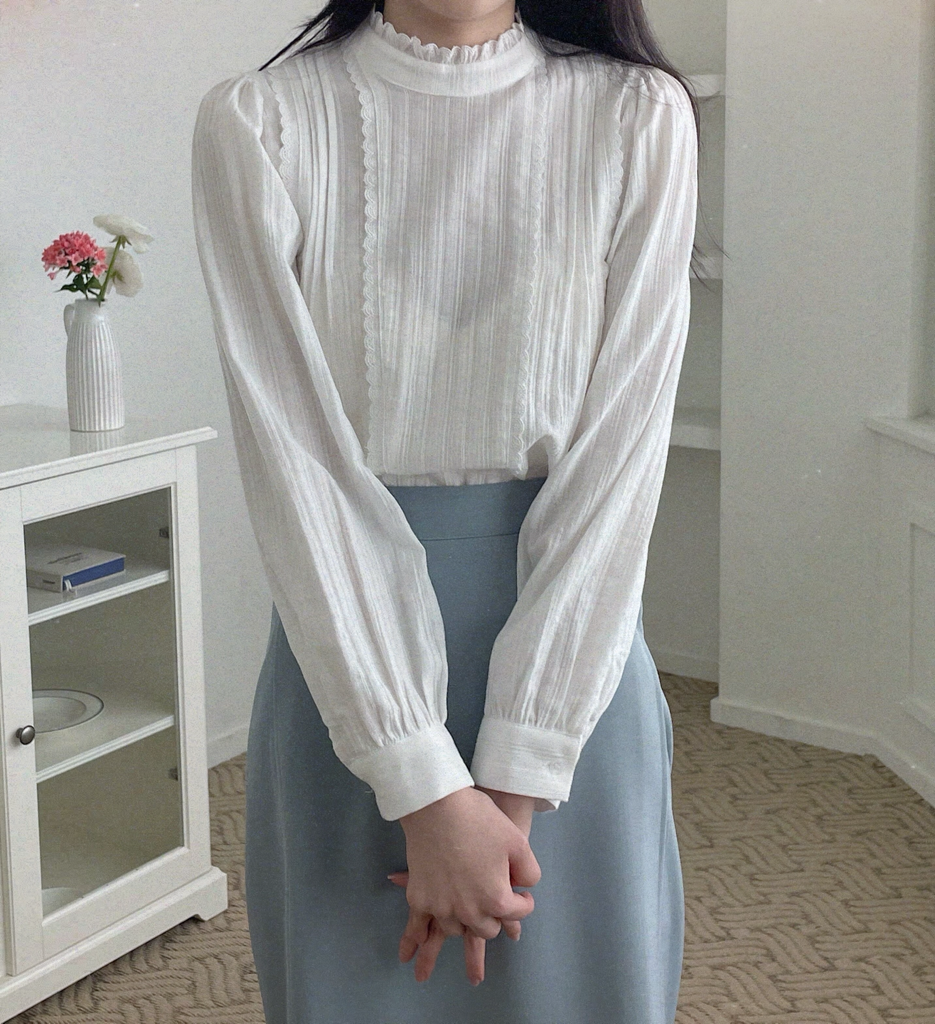 와일블라우스(차이나브라우스프릴넥BL레이스셔링핀턱blouse면블라)1
