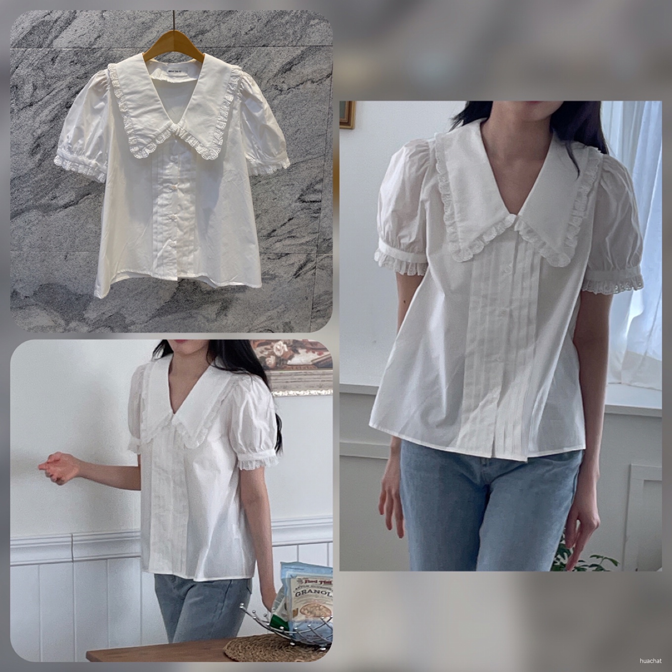헤이즈(BL블라blouse레이스카라핀턱신상퍼프세일러프릴)