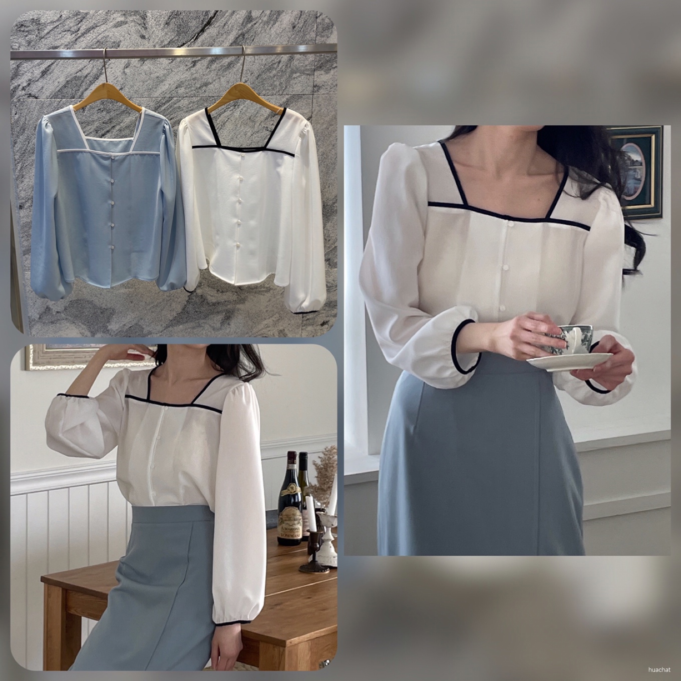에밀bl (가을신상,23fw,스퀘어블라우스,하객룩,레이어드blouse)
