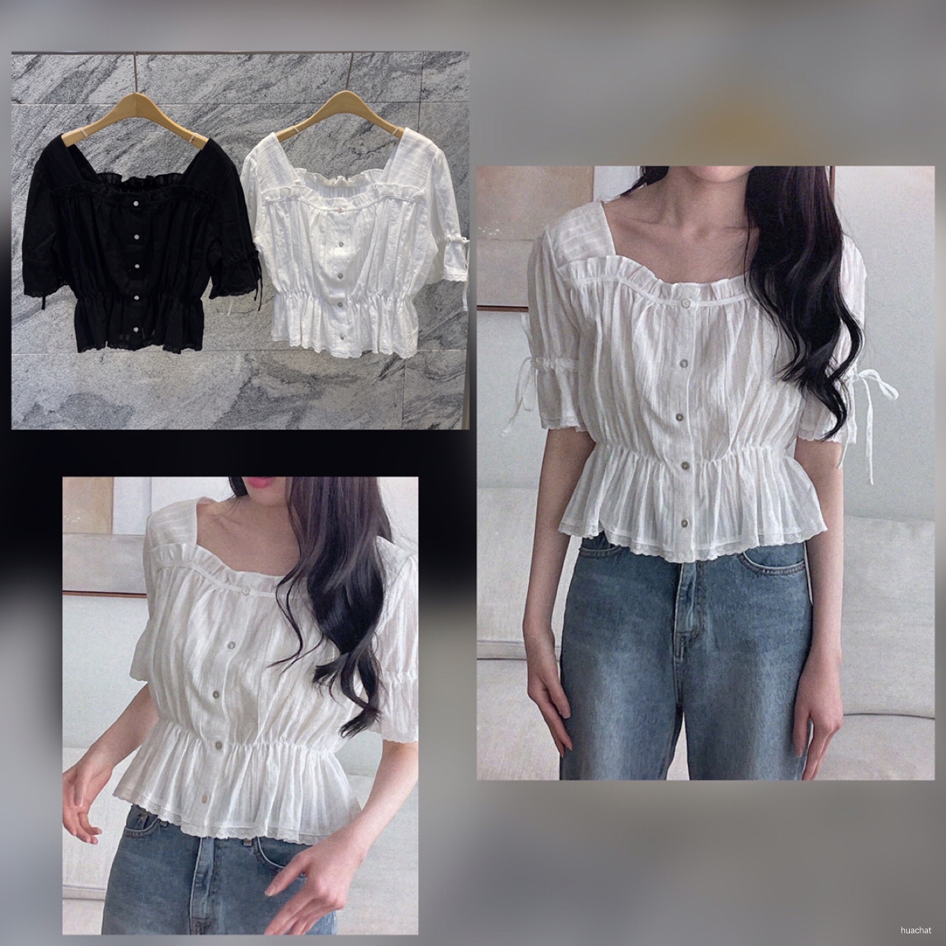 차일블라우스(스퀘어넥소매퍼프BL면마BLOUSE레이스)1