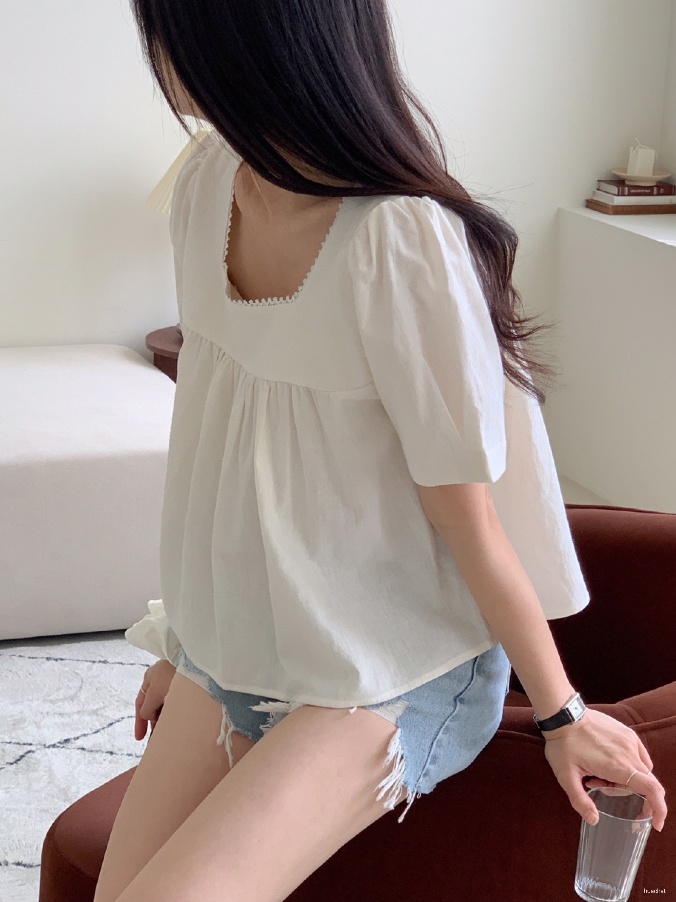 라미블라우스(스퀘어넥소매퍼프BL시원한BLOUSE봄하객룩)