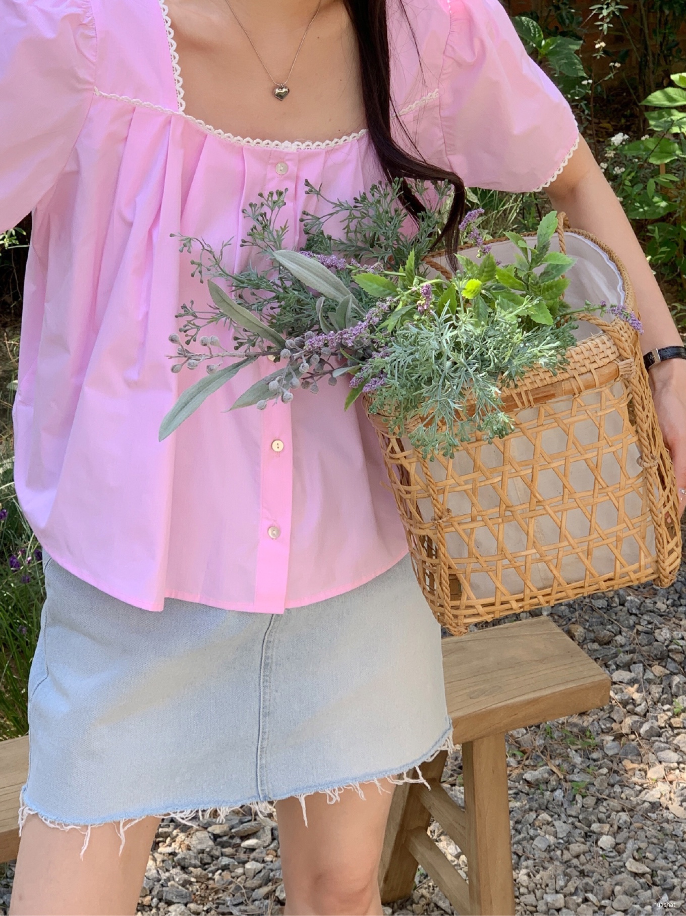 파리스블라우스(스퀘어넥소매퍼프레이스핀턱크롭BLOUSE핑크소라스st블라)