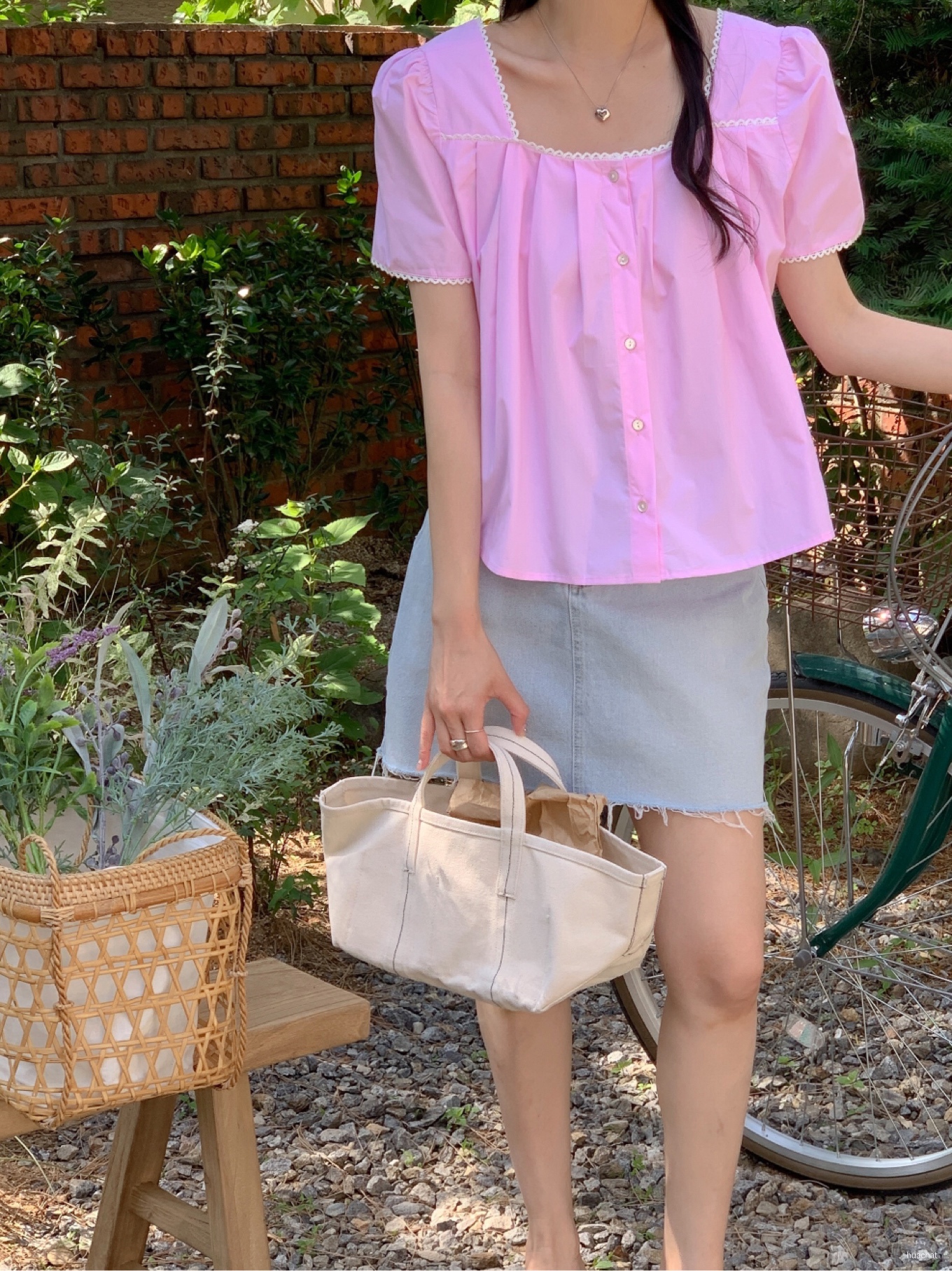 파리스블라우스(스퀘어넥소매퍼프레이스핀턱크롭BLOUSE핑크소라스st블라)1