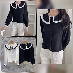 프릴카라블라우스(레이스베이직배색셔츠BL브라우스)1