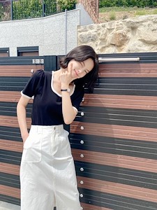 밀크 단가라 반팔 니트1