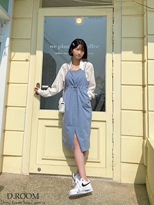 코튼 스트링 멜빵 원피스1