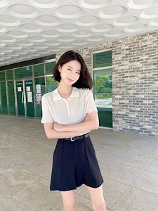 라일락 카라 반팔 니트
