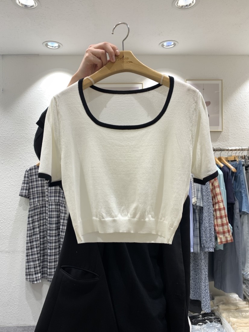 밀크 단가라 반팔 니트1