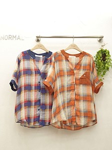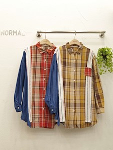 구제체크배색데님남방