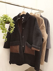 배색양뽀글코트