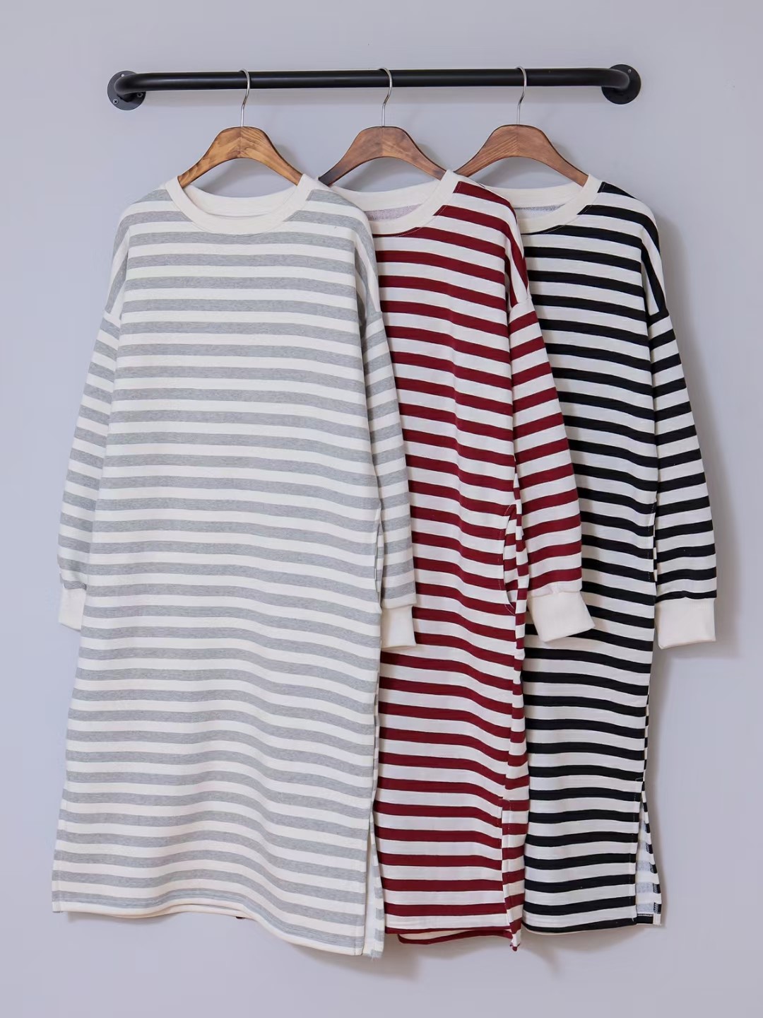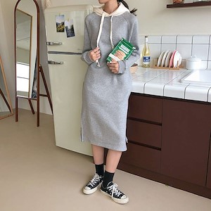 배색후드롱기모원피스
