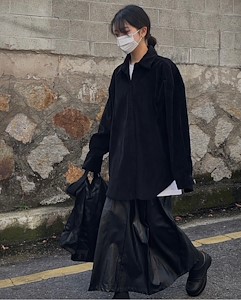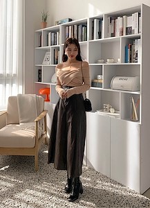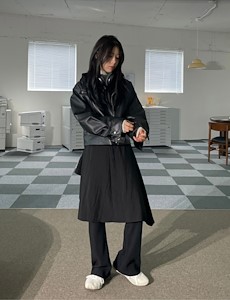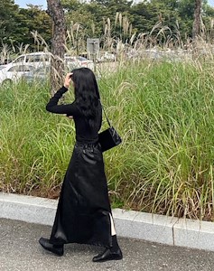 레더밴딩맞주름롱스커투