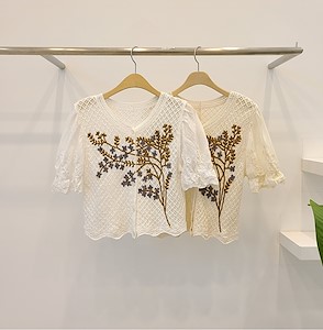 꽃나무 뜨게 블라우스