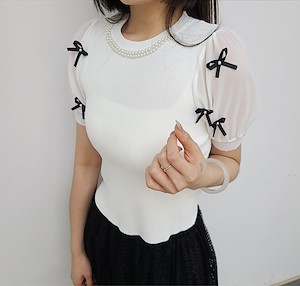 리본진주 블라우스