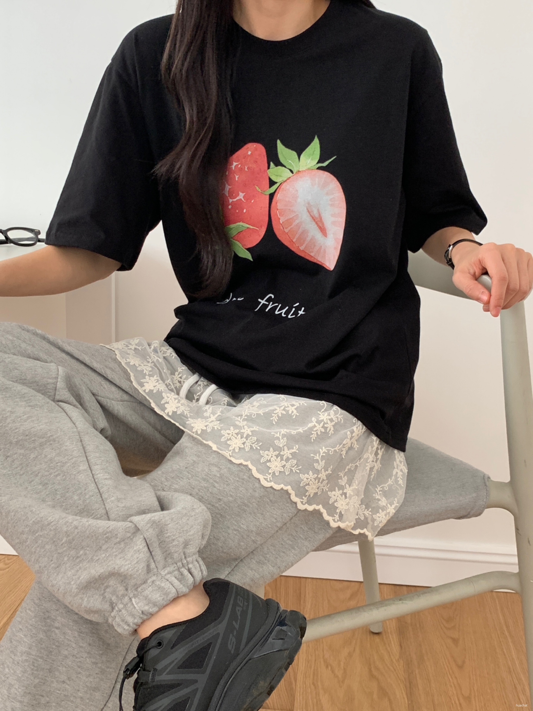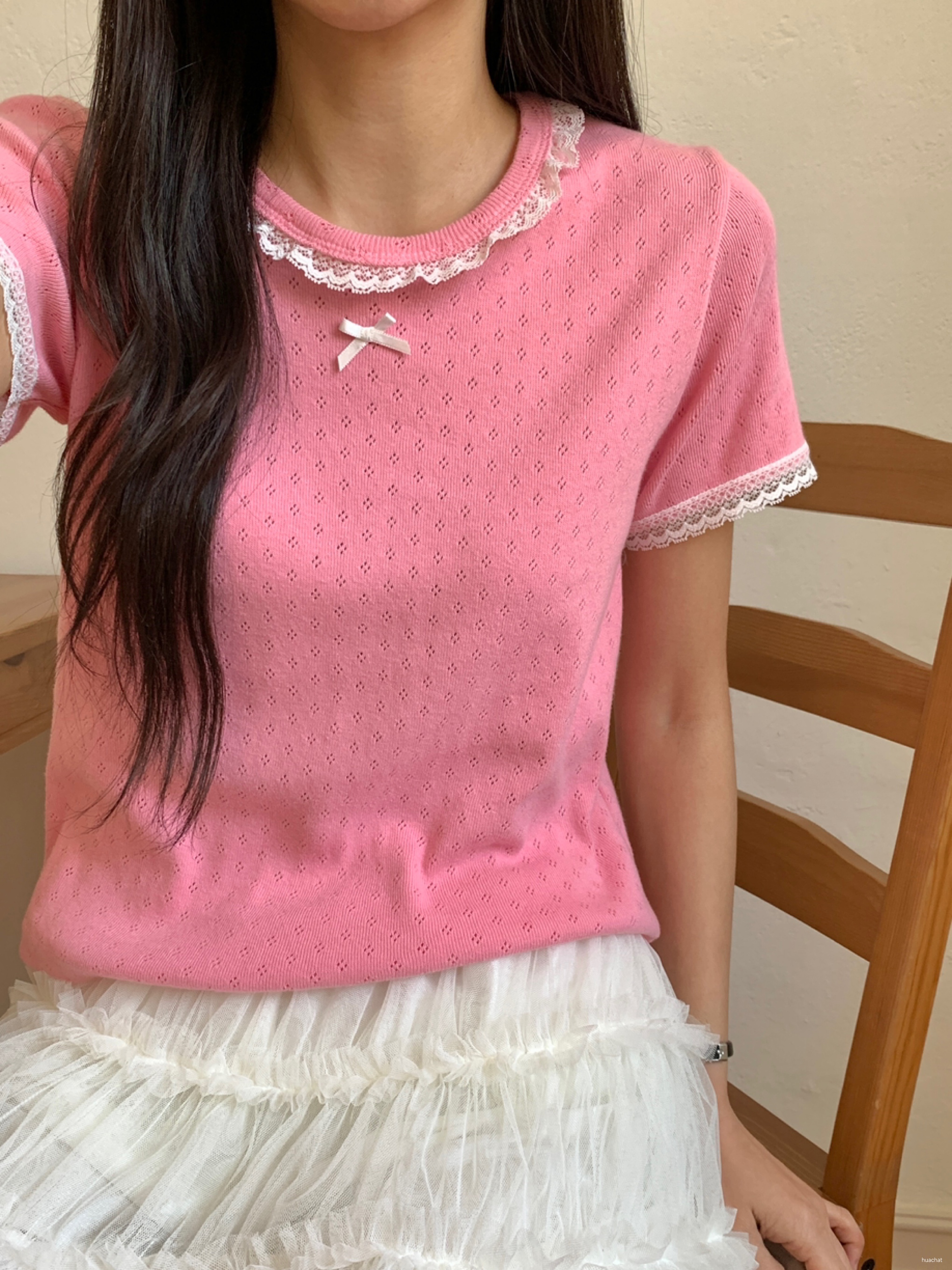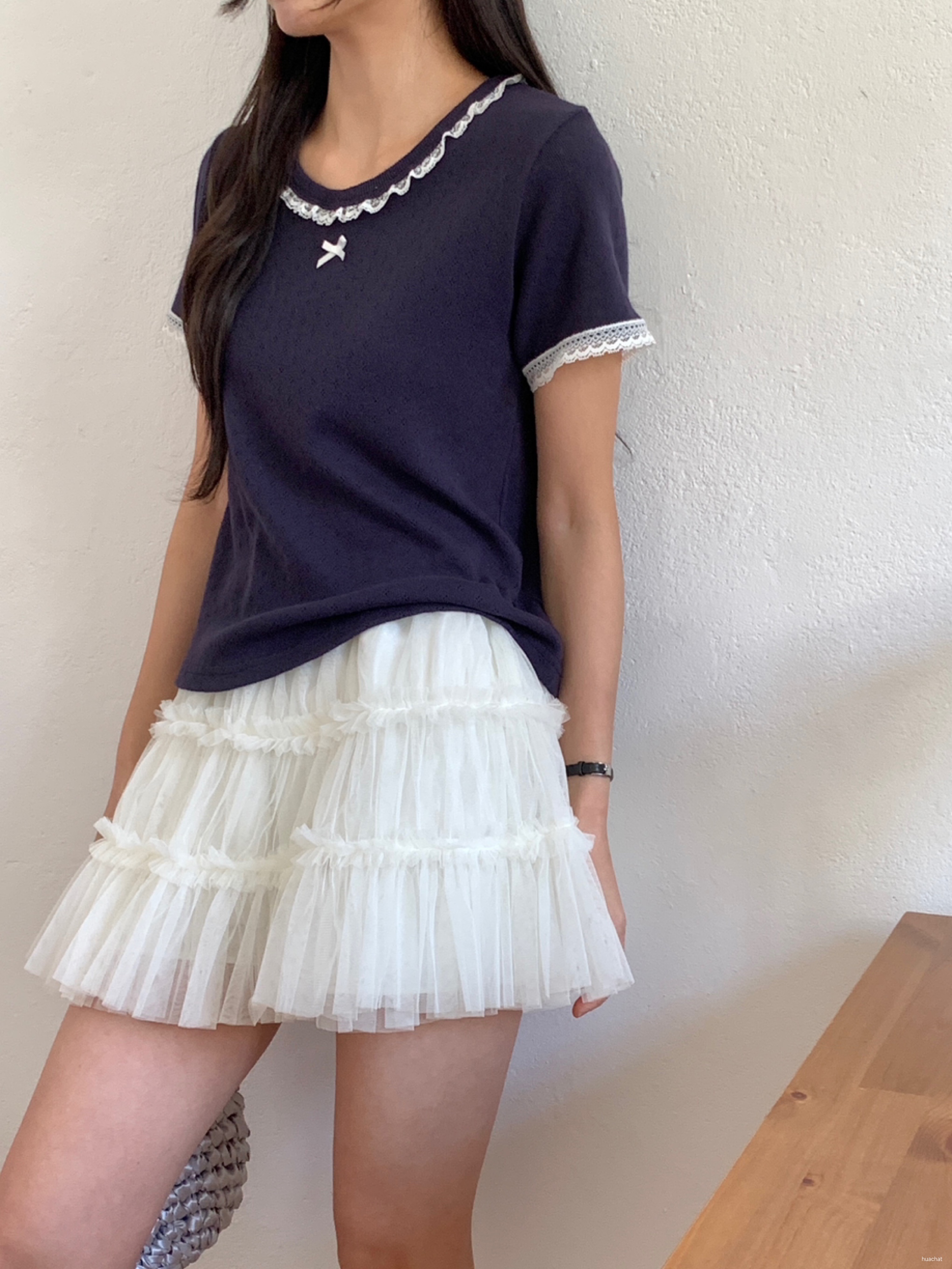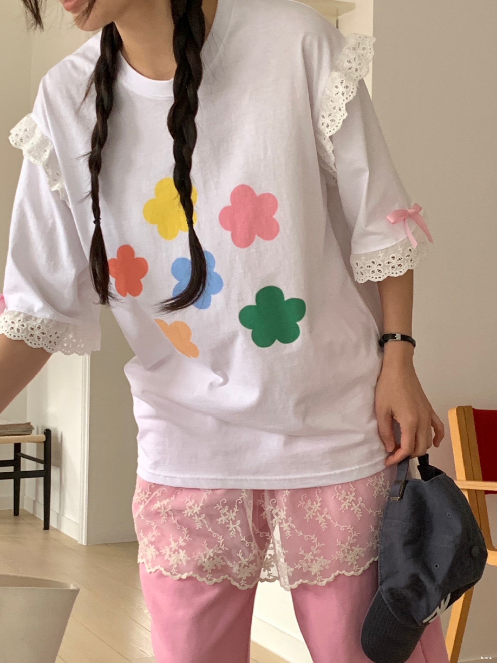 레이스꽃반팔T