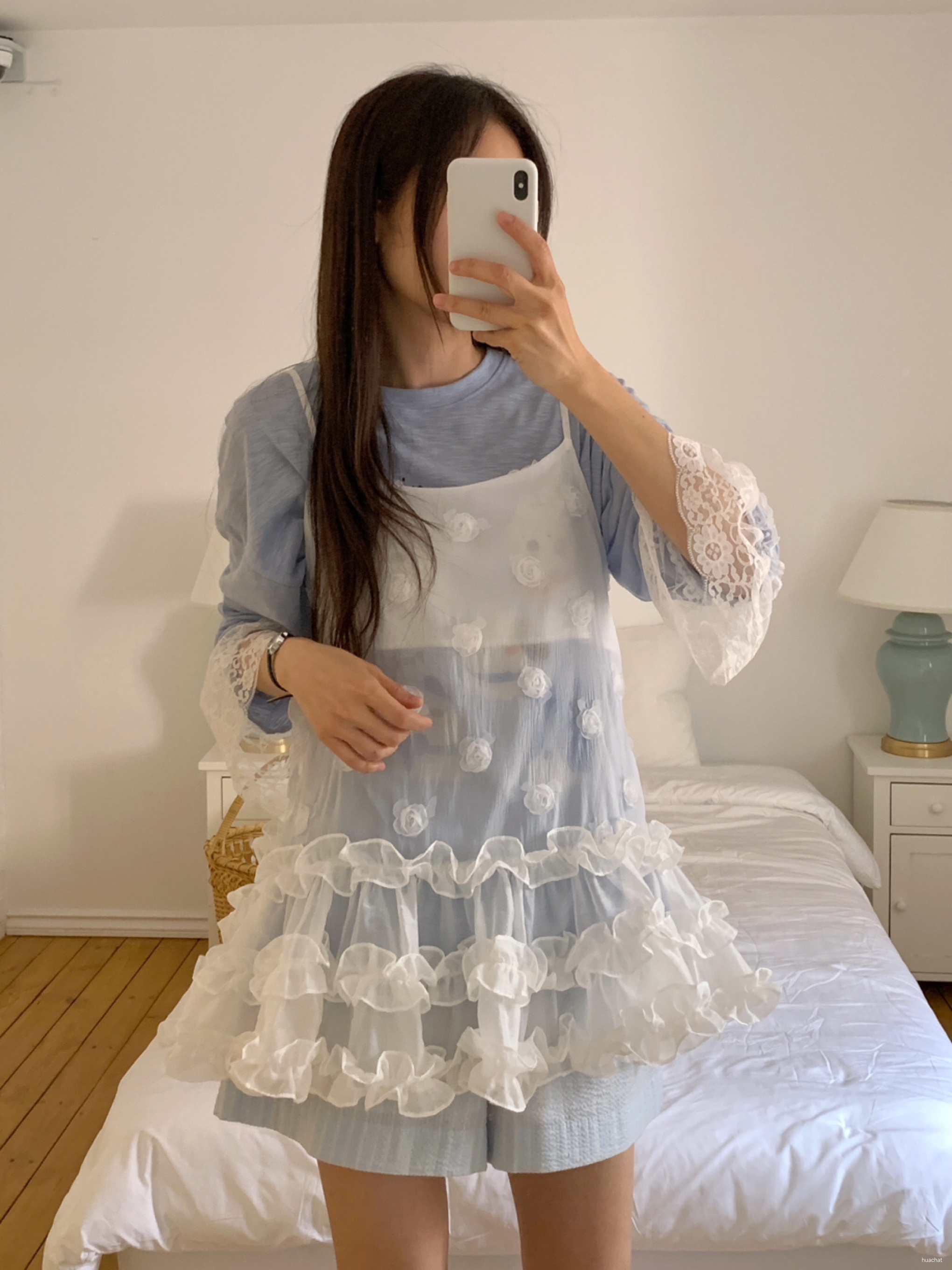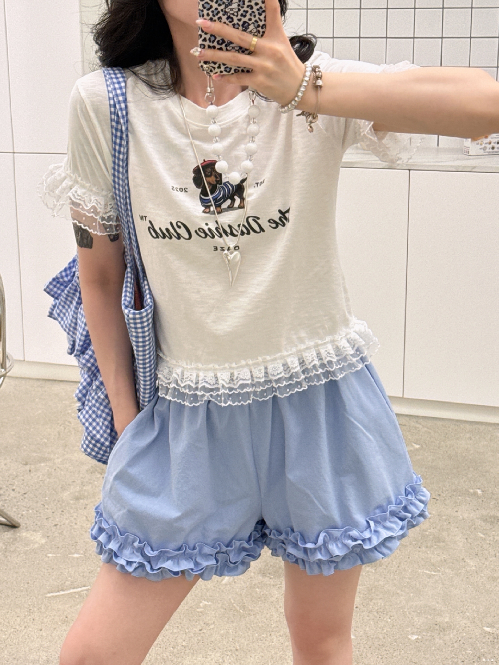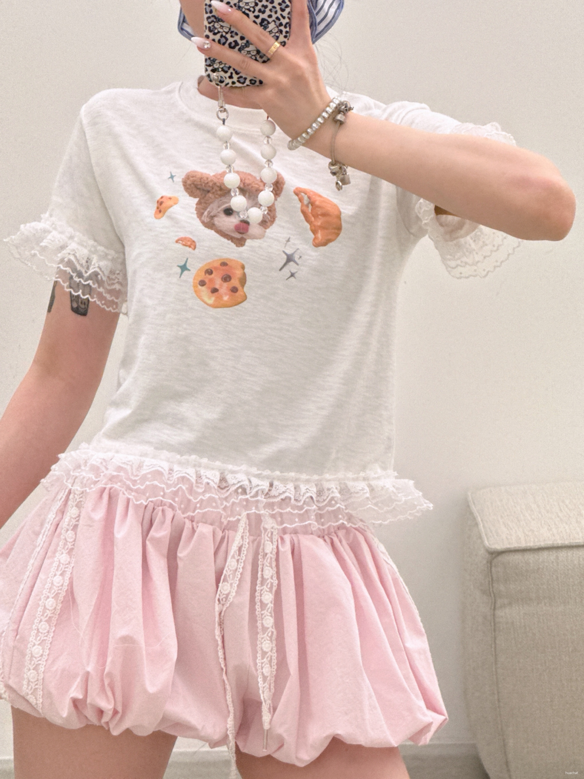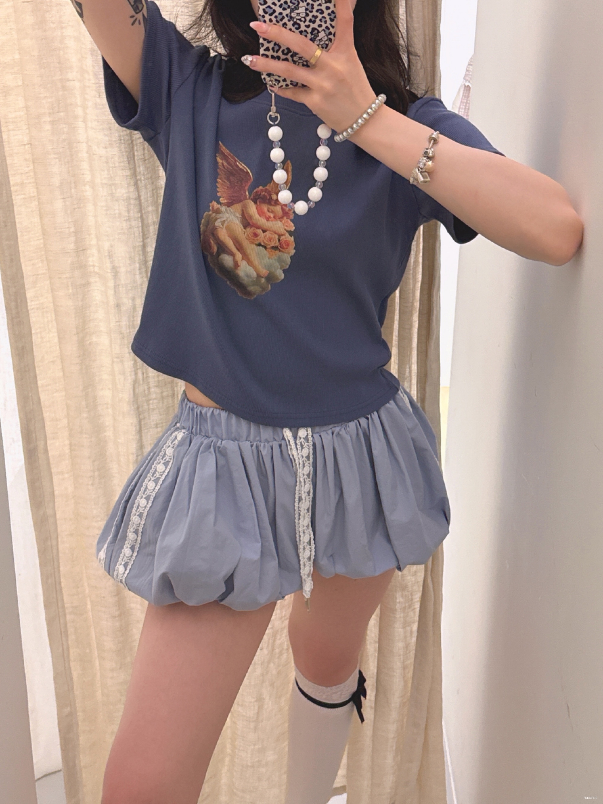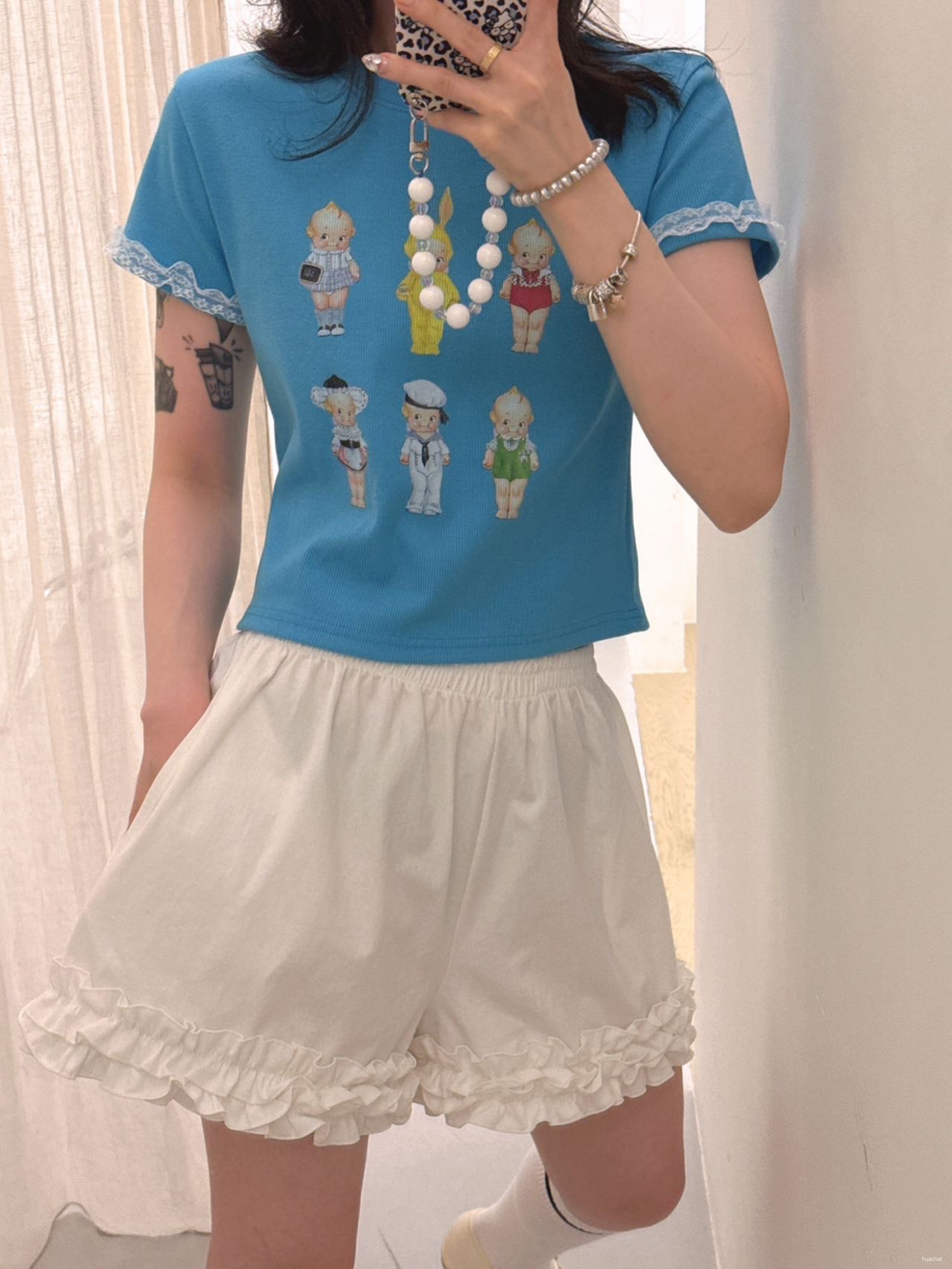 레이스꽃반팔T