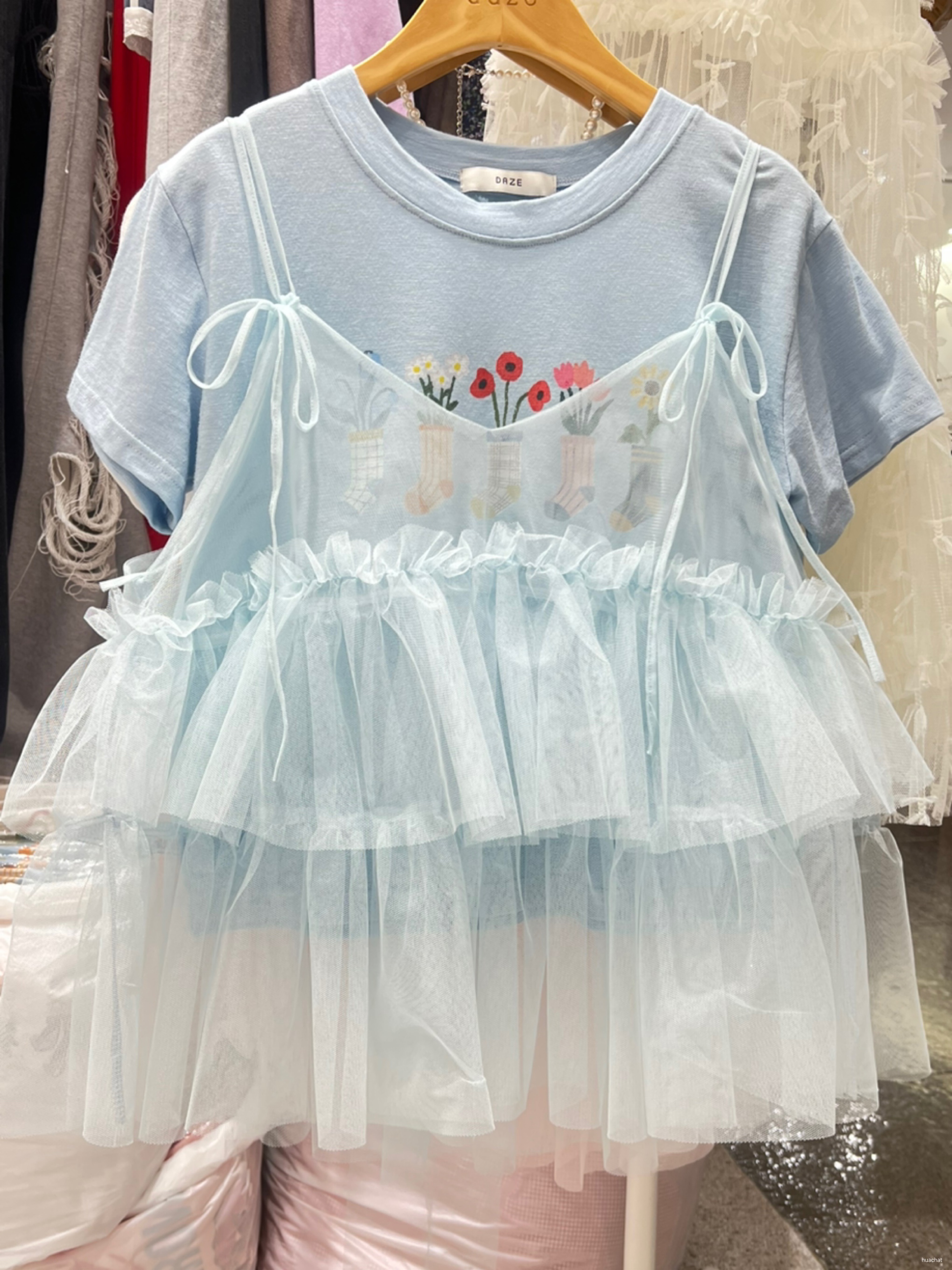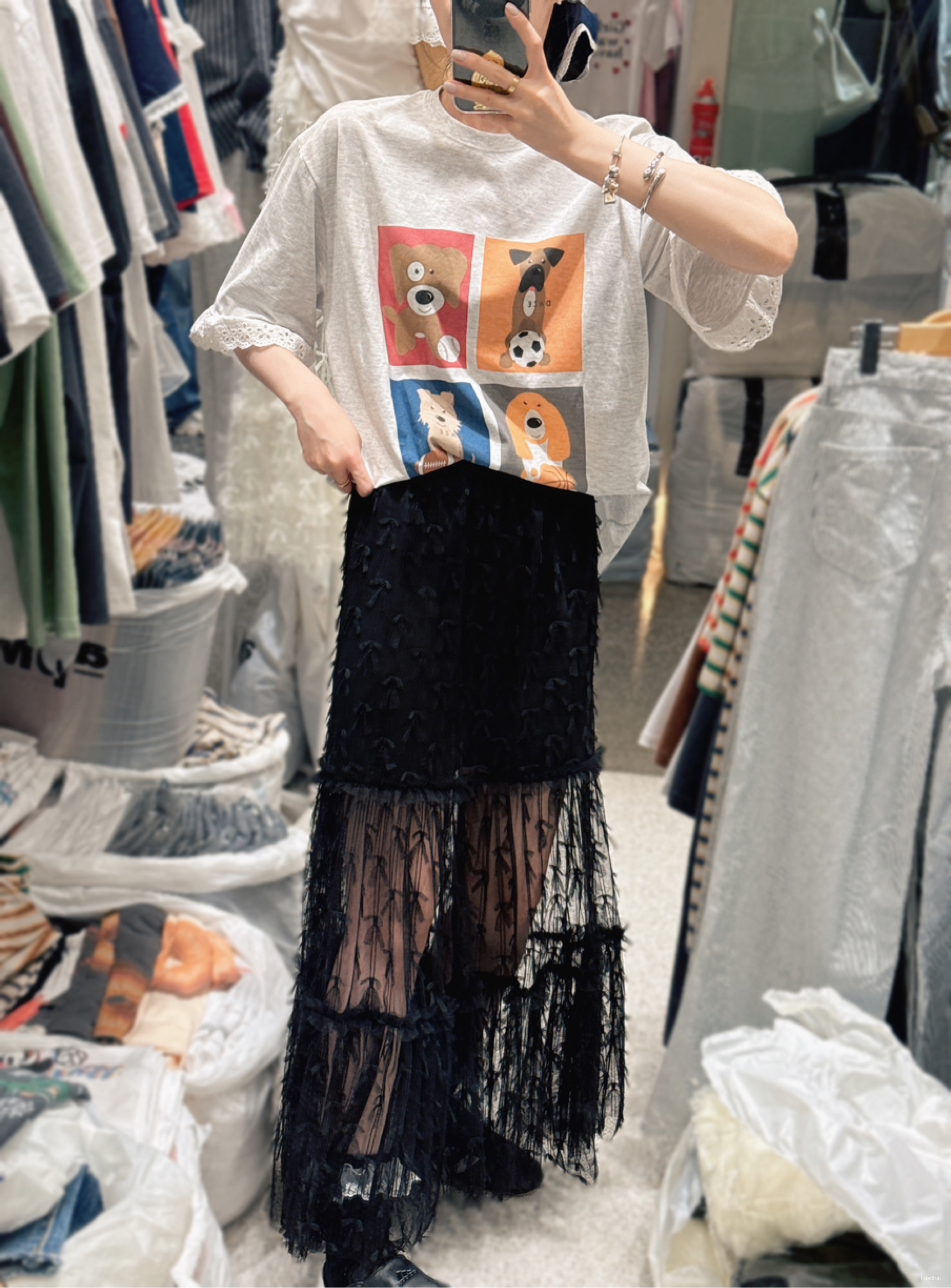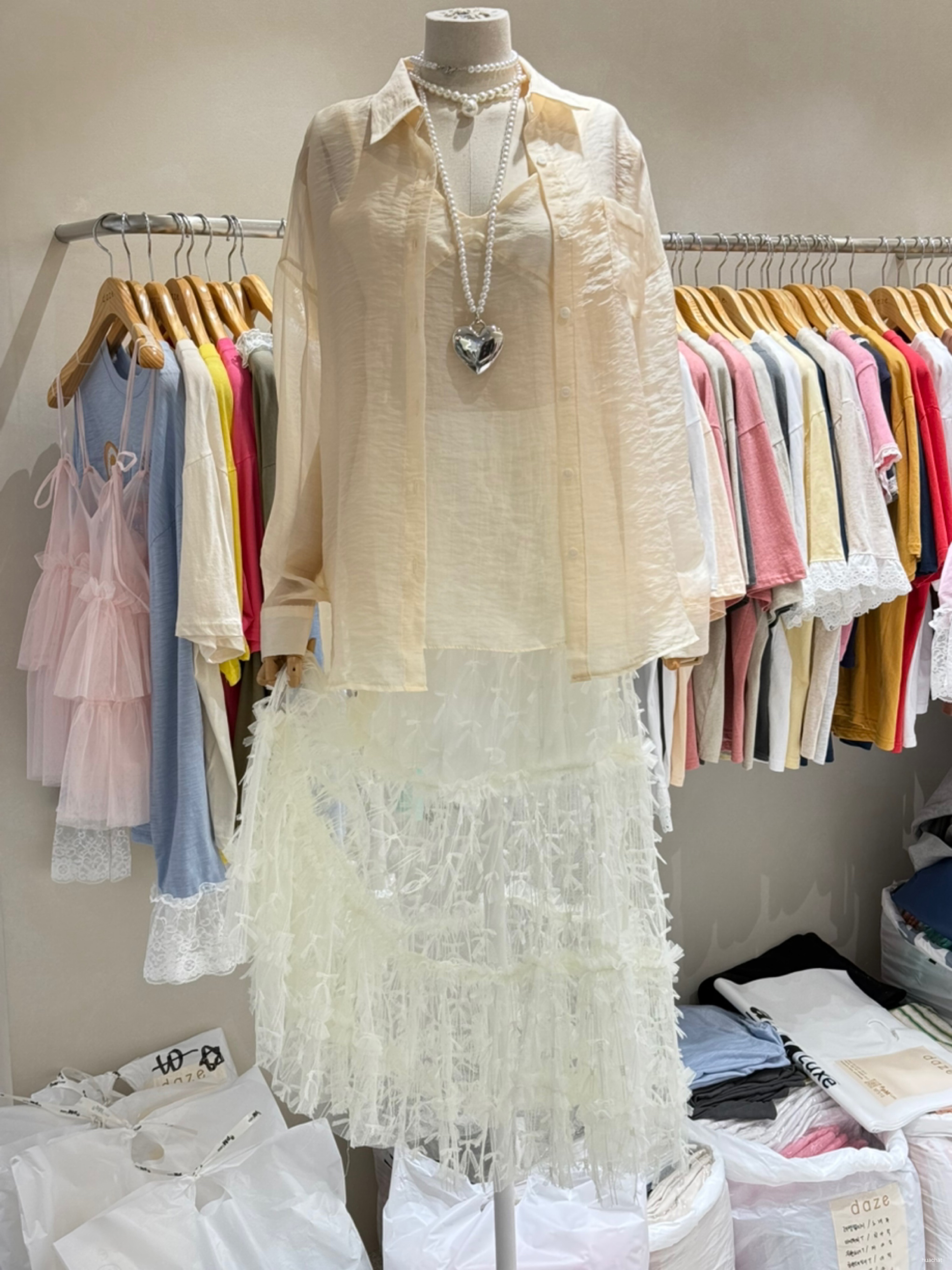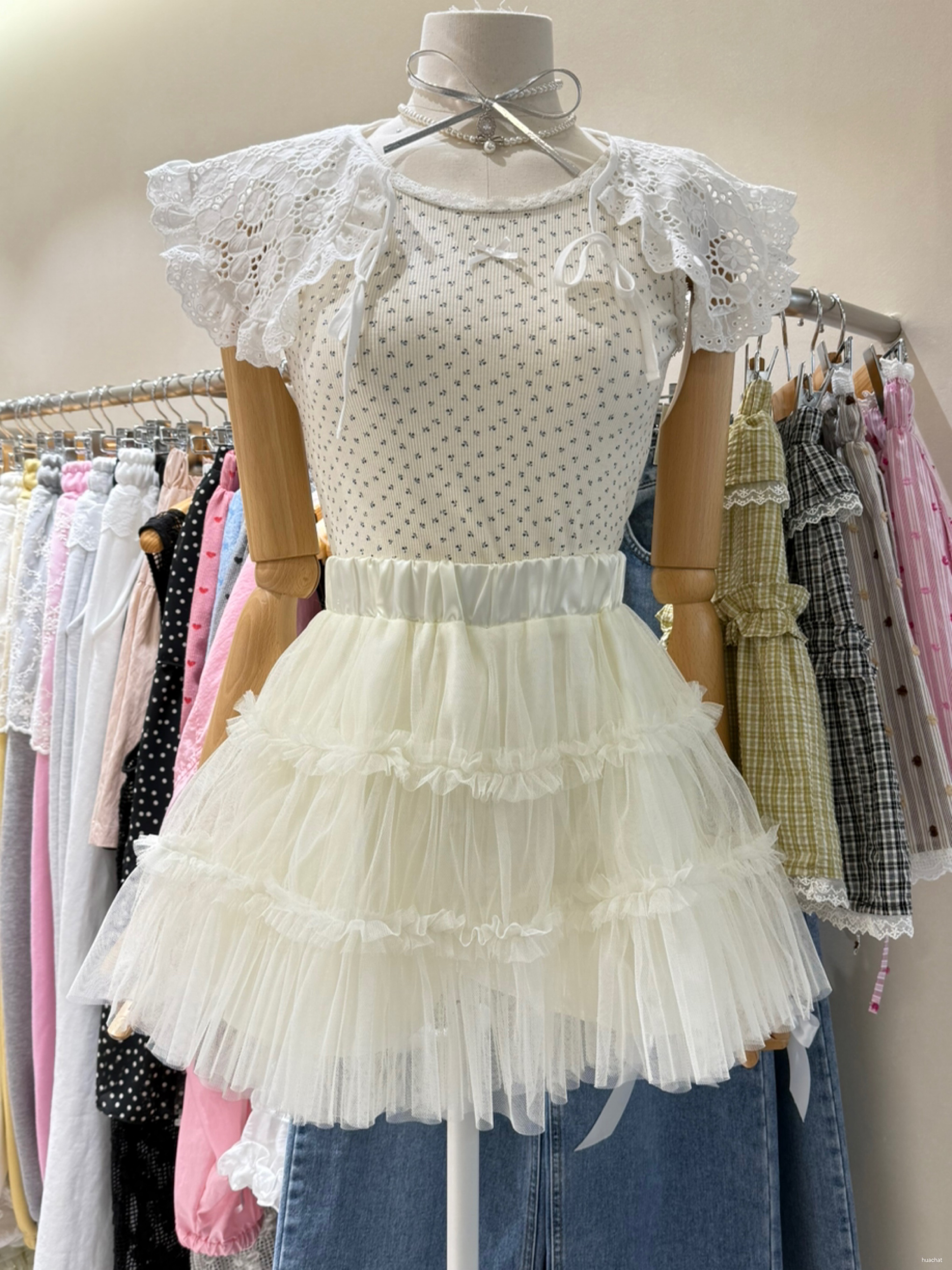 리본망사롱스커트