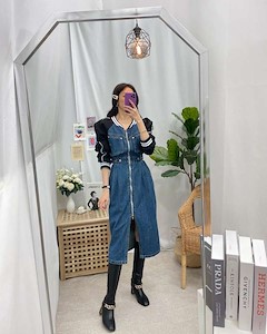 신상)배색청롱원피스