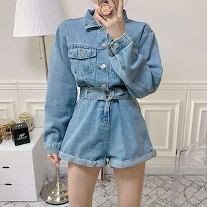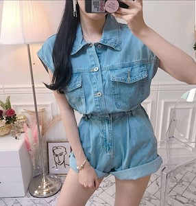 sale)SS하프데님점프수트
