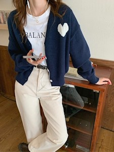 하트 니트 가디건