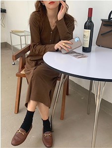 단추 니트 원피스