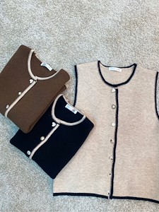 배색 니트 조끼