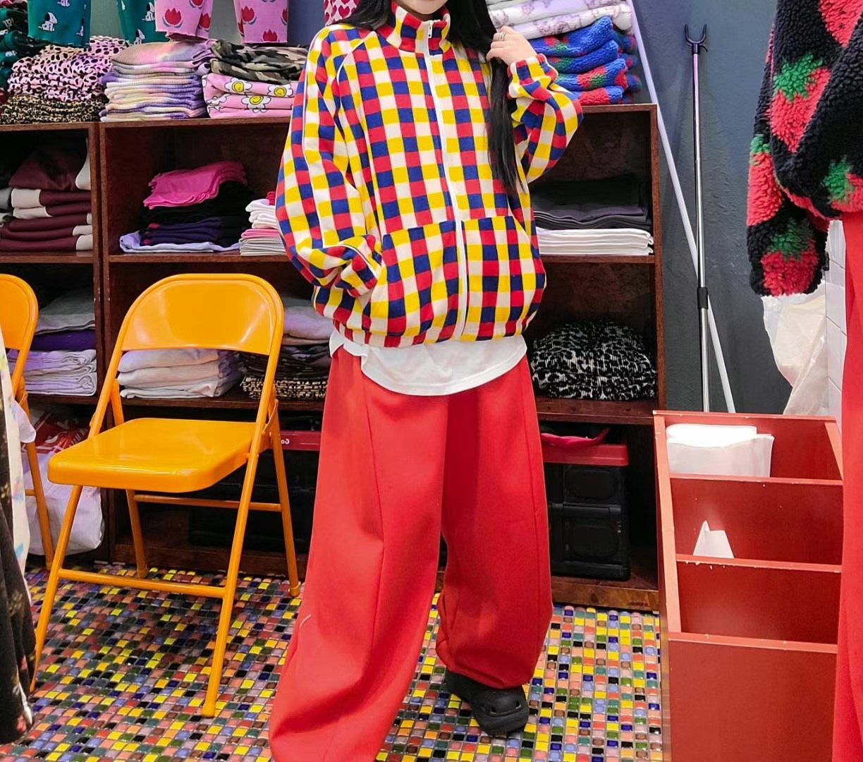 체크 후리스 점퍼