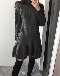 女人味十足高领羊毛针织连衣裙