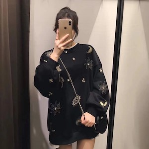 美腻星空物语纯色圆领套头卫衣