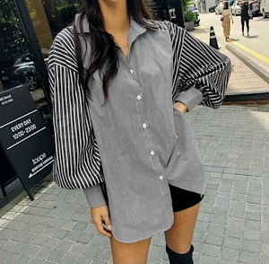 条纹拼接纯色衬衫