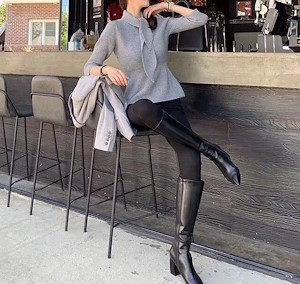 ol灰色领巾系带针织毛衣