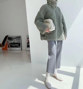 帅气机车羊羔毛羊毛大衣